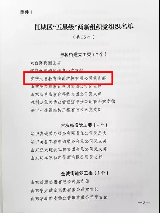 大智教育集團黨委自成立以來,始終堅持“黨務支持業(yè)務,業(yè)務反哺黨務”的工作理念,創(chuàng)新開展黨建工作。在集團黨委的領導下,大智濟寧區(qū)域黨支部不斷扎實推進黨建工作,在區(qū)域內營造黨員先鋒模范帶頭干的良好氛圍。