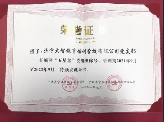 此次獲評“五星級”黨組織稱號,充分展現(xiàn)了任城區(qū)委對濟寧大智黨建工作的肯定和勉勵,同時也是一種鞭策和期許。接下來,在建黨100周年之際,大智濟寧區(qū)域黨支部將繼續(xù)深化基層黨組織標準化和規(guī)范化建設,持續(xù)在激發(fā)黨建活力上下功夫,推動黨建與經營管理深度融合,進一步提升黨支部建設整體水平,為濟寧區(qū)域高質量發(fā)展提供堅強的組織保障。