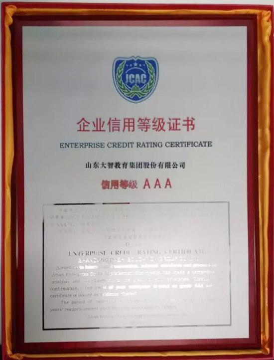 近日,經(jīng)濟(jì)南市企業(yè)信譽(yù)評(píng)價(jià)工作委員會(huì)嚴(yán)格審核與評(píng)估,大智教育集團(tuán)被評(píng)定為企業(yè)信用等級(jí)AAA級(jí),按照企業(yè)信用等級(jí)標(biāo)準(zhǔn),AAA級(jí)為最高信用等級(jí)。...