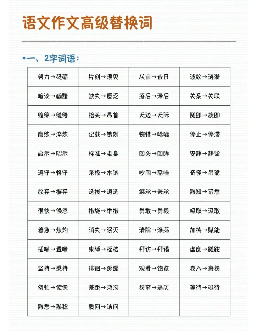 語文作文高級替換詞▍ 聲明:本文整理自網(wǎng)絡(luò),如有侵權(quán),請聯(lián)系刪除。