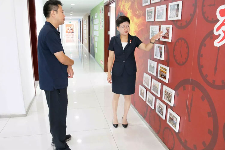 王現(xiàn)芹帶領(lǐng)大家參觀了大智控股集團(tuán)總部,重點(diǎn)向大家闡釋了大智“智惠黨建”系統(tǒng)、“一三九”黨建工作模式和大智“一帶一促”群團(tuán)建設(shè)模式。