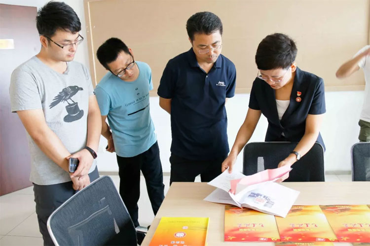 07月26日,濟(jì)南市章丘區(qū)雙山街道黨工委副書記張鵬(習(xí)總書記考察山東時(shí)曾到張鵬副書記工作所在地章丘區(qū)雙山街道實(shí)地考察)一行4人在歷下區(qū)解放路黨工委副書記高紅的陪同下,蒞臨大智控股集團(tuán)考察交流黨建工作。